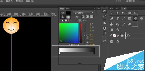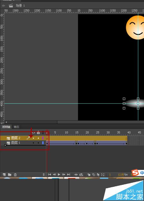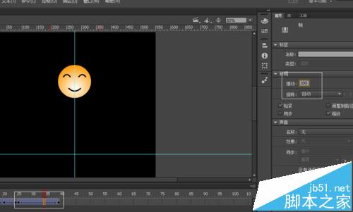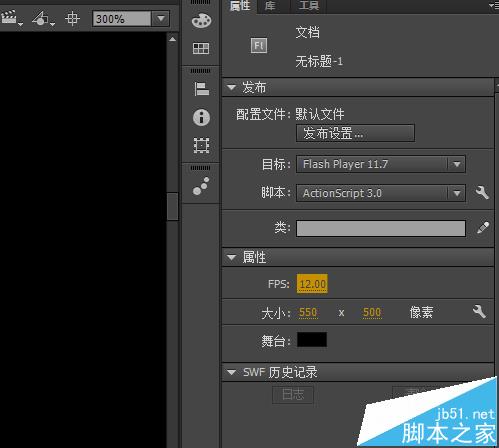 13、笑脸和哭脸都画好了以后,就开始制作动画了。点击画布,点击属性,将舞台的背景颜色设置为黑色,将宽设置为550 高度为500。fps:12