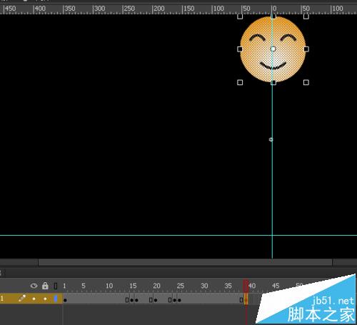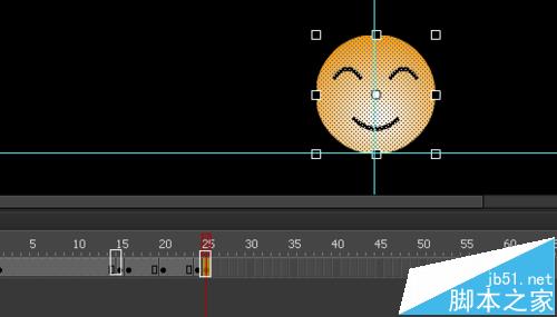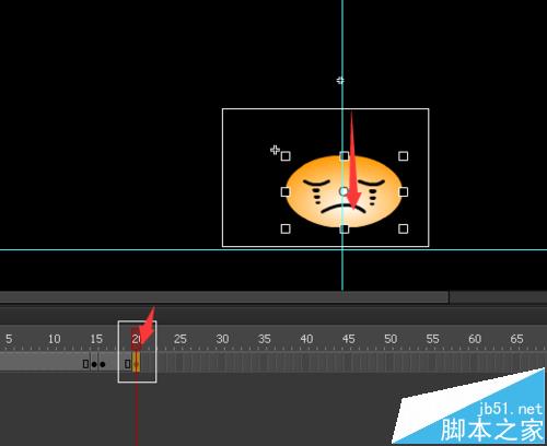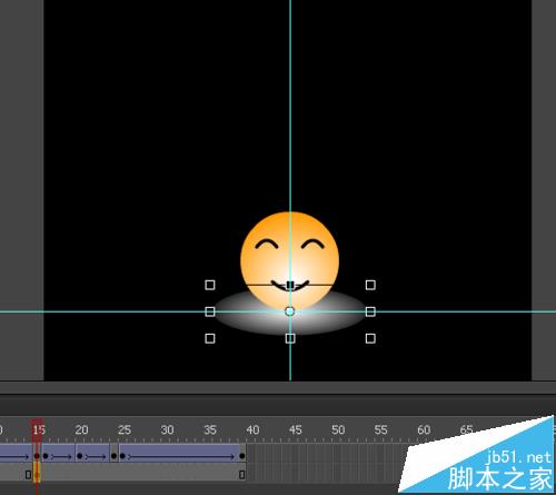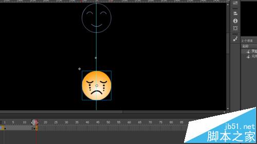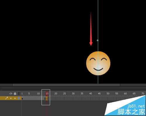 16、在15帧这个位置,按F6,创建关键帧,并将笑脸按住shift键移动到下端。如图。
