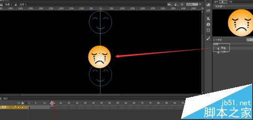 11、对哭脸元件,进行双击,选择选择工具,对眼睛进行编辑。将眼睛往下拉如图。