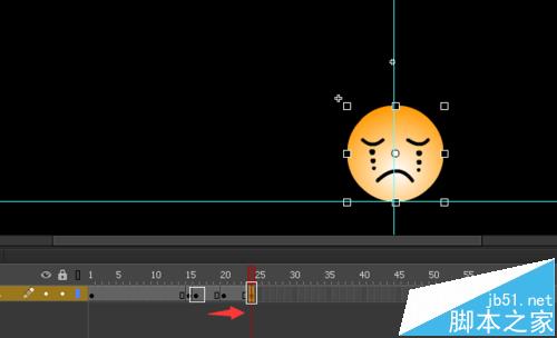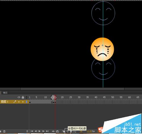 17、第16帧按F7创建空白关键帧,将原件哭脸移到页面中,点击绘图纸外观轮廓,按键盘光标键微移。和下面那个笑脸重合就可以了。