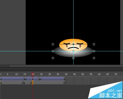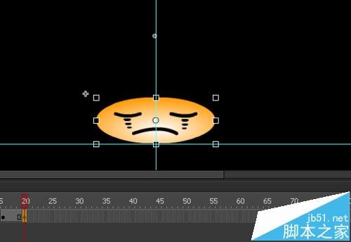 18、将绘图纸外观轮廓关掉。添加一条横向辅助线,在20帧按F6键,用任意变形工具,将图形压扁,并拉大再放回辅助线上。