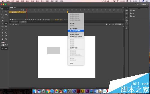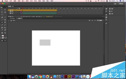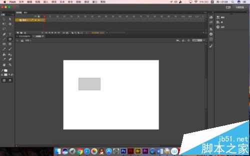 1、首先在第一帧处我们选择矩形工具画一个矩形出来,边框与填充色大家自由选择