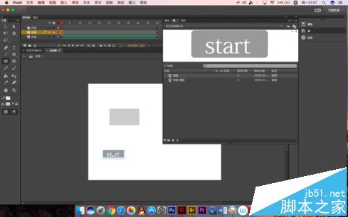 5、下面我们来制作按钮层,因为之前有发过一个教程是教大家怎么制作按钮的,座椅这里就套用了,而且flashCC中没有公用库了,需要自己制作按钮,所以建议大家最好做一些备用。选中按钮图层的第一帧,将库面板调出来,把按钮拖出来