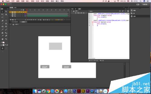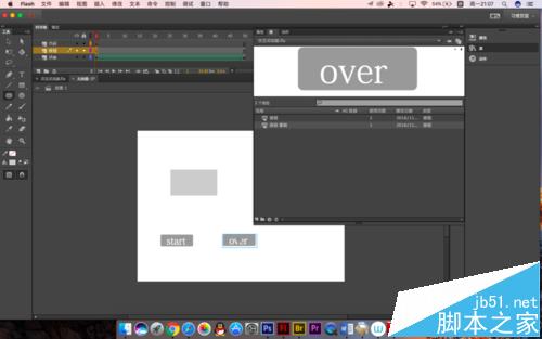 9、另一个也是同样的操作,改为over,如果大家没有按钮或者嫌麻烦的话可以制作一个简易的按钮,画一个图形就可以了,主要是测试停止和播放