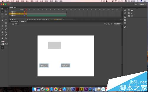 4、新建两个空白图层,然后对图层进行命名,有图形的可命名为动画,因为需要按钮,所以一个命名为按钮,还有一个就是代码层,自己能分清就可以了