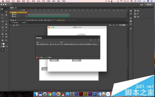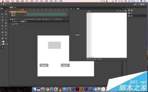 10、然后我们找到动作面板,flashCC的动作面板十分简洁,没有之前的那么多按钮作用,所以我们还是直接编写代码吧