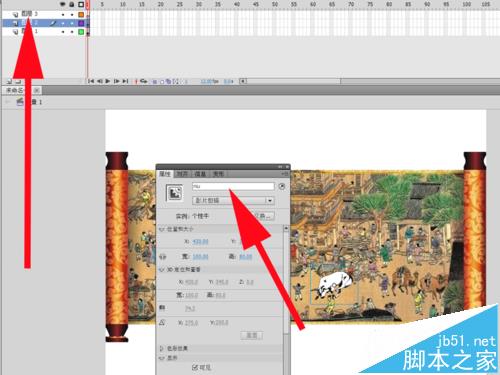 5、在属性面板中修改该元件的实例名称为“niu”,点击新建图层按钮新建图层3.