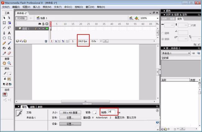 5、在下面的“属性”面板中同样也可以看到帧频的数值,一般制作动画时由于画面的需要可能会关闭“属性”面板。
