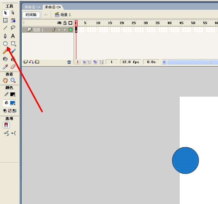 3、然后我们再第一帧这里,绘制一个小球颜色您可以自由选