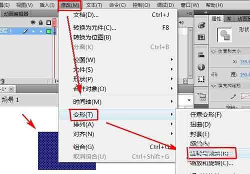 flash旋转对象会使该对象围绕其变形点旋转。变形点与注册点对齐,默认位于对象的中心,但也可以通过拖动来移动该点。通过下面的方法来看一下怎样旋转和倾斜对象。