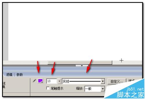 1、新建文档;在舞台上画出笔触高度为13;紫色的直线,如下图所示;