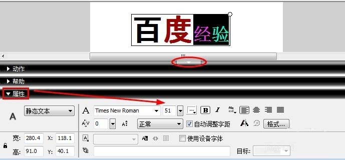 3、选择你想要修改的文字以后,然后在下方的属性对话框中就可以设置字体的大小颜色,粗细等等各种文字设置。当然这里的字体大小可以自己输入数字哦!