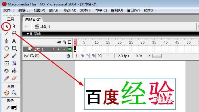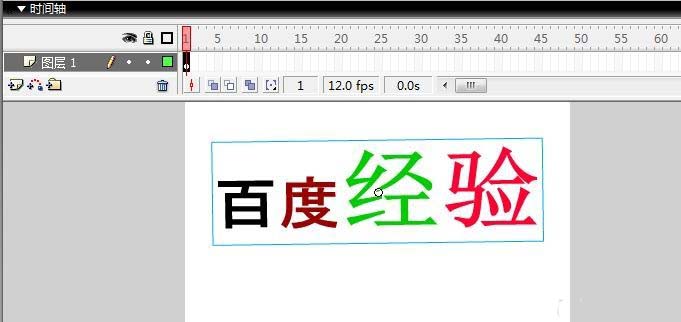 8、我们这里可以用工具箱中的选择工具和部分选取工具,然后把鼠标放在文字上,根据自己需要调整美化文字,当然FLASH中对文字的处理很多,这里就说这么多,大家平时慢慢自己总结更多的美观效果哦!