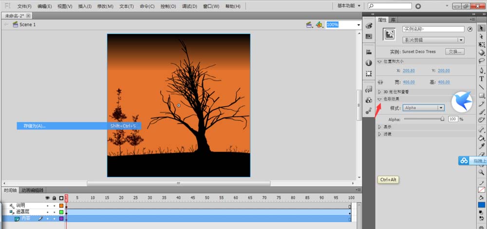 flash怎么制作一个2017年雄鸡独唱贺新年的图?