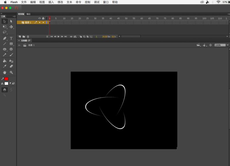 5、再次回到舞台,新建元件,这次是影片剪辑,将元件2拖进去,,新建图层,画一个椭圆,不要填充色,开一个缺口