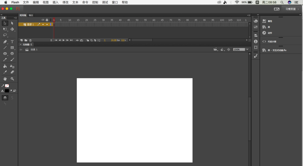 1、首先还是分析一下制作中的关键点,之前都是在一个图层中绘制的,这次的制作需要在多个图层中绘制,另外的就是对帧的熟悉,还是新建一个默认文件