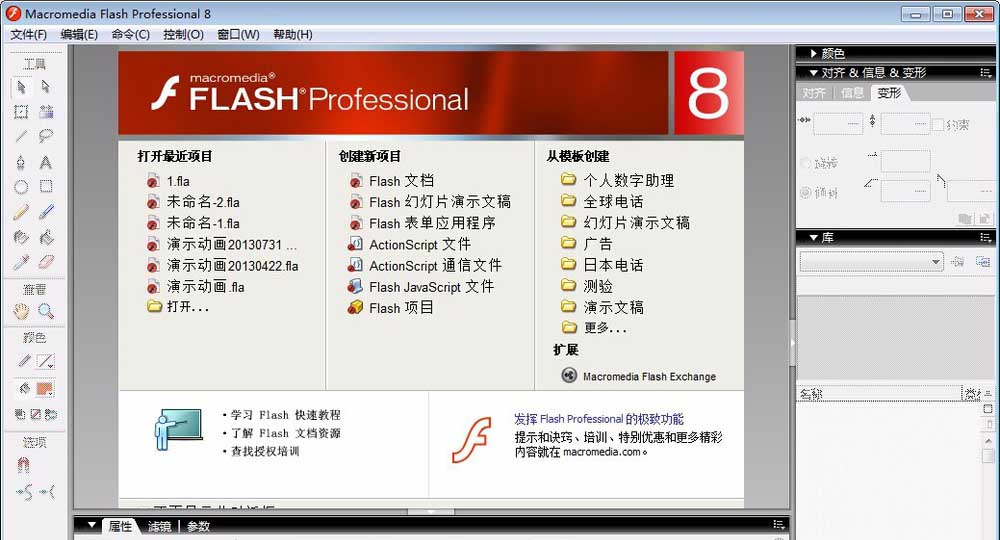 1、打开flash程序,界面如图所示,我这里用的是flash8,其它版本界面会有所不同。