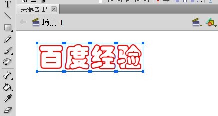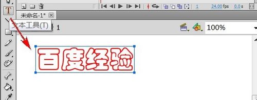 3、在工具栏里选择“文本工具”,在舞台上输入文字“百度经验”