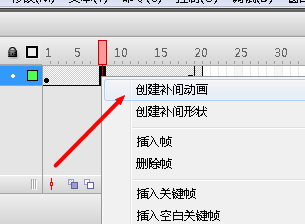 8、最后在两关键桢之间右击,创建”补间动画“。