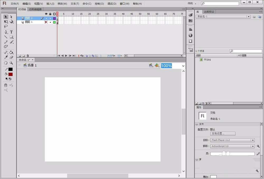 1、打开flash这款软件,进入flash的操作界面,如图所示: