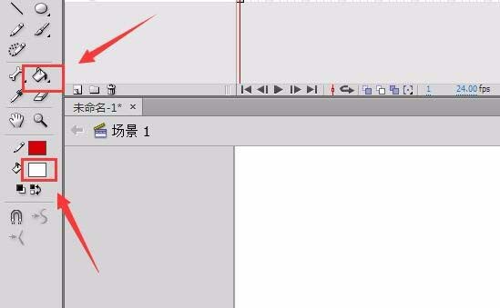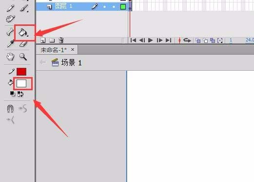 11、在工具箱内找到填充工具,设置填充颜色为白色,如图所示: