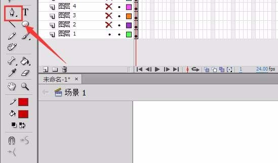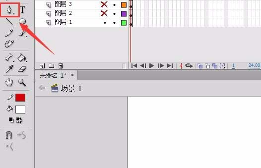 16、选择填充工具,在刚刚绘制的曲线内点击鼠标左键填充上红色,如图所示:
