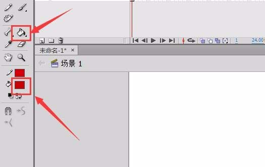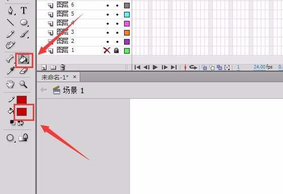 15、在工具箱内找到填充工具,将填充颜色设置为红色,如图所示: