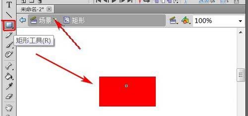 4、在工具栏中用“矩形工具”绘制一个矩形,完成后点“场景1”返回场景。