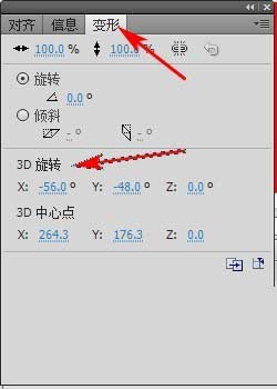 10、也可以在“变形” 面板中设置3D旋转的属性。