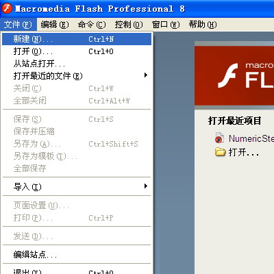 1、打开Flash 8 Professional,按图点【新建】,在弹出对话框中选【Flash文档】。