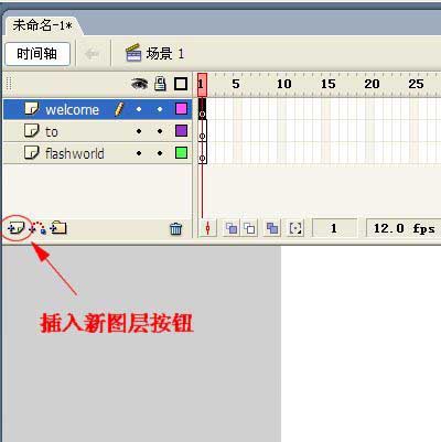 3、在时间轴面板上点击【插入图层】按钮,并双击各图层名称,改成新的名称。