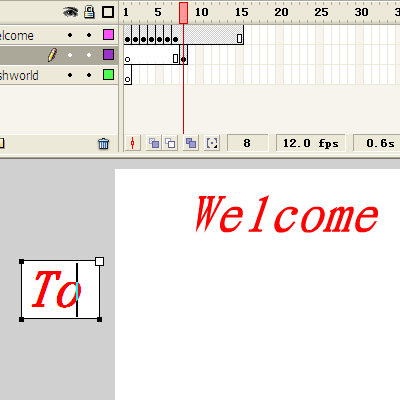 8、在to层第8帧插入一个关键帧,然后用文本工具输入"To",并移动到舞台左侧。