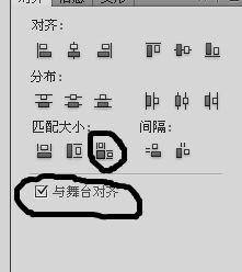 3、在对齐面板中,勾选与舞台对齐,匹配宽度和高度。