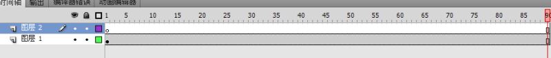 15、在90帧插入关键帧,选中图层二的第90帧,再选中90帧的图形,然后在属性面板中改变x的距离为600。(使图形正好移到舞台外)