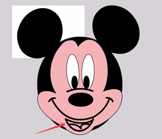 29、在嘴巴的下部点击鼠标左键,填充上红色,我们的图形就绘制完成了,如图所示: