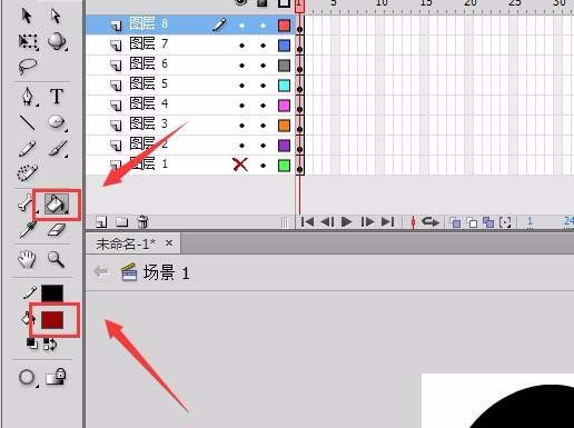 9、在工具箱内找到填充工具,如图所示:
