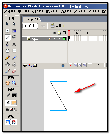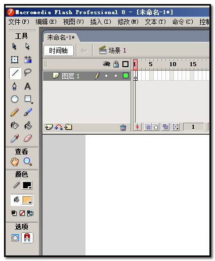 1、打开flash 8操作界面;如下图所示。比如,现在要在舞台上画出一条直线。鼠标点下线条工具。