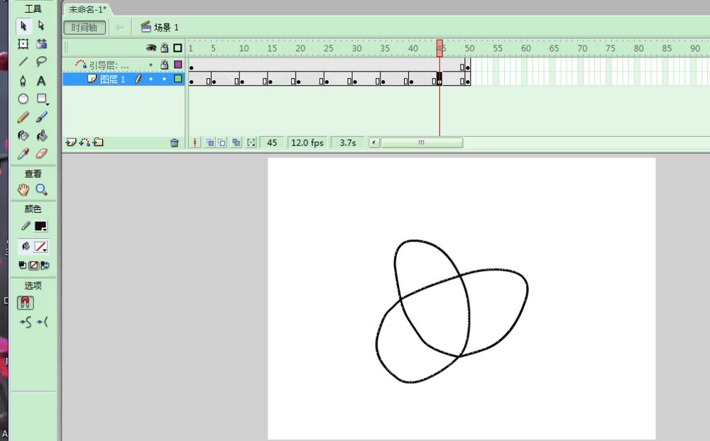 用FLASH软件,模拟三叶图的起始走向图,应用引导图层,补间动画等命令,下面为大家详细介绍一下,来看看吧。