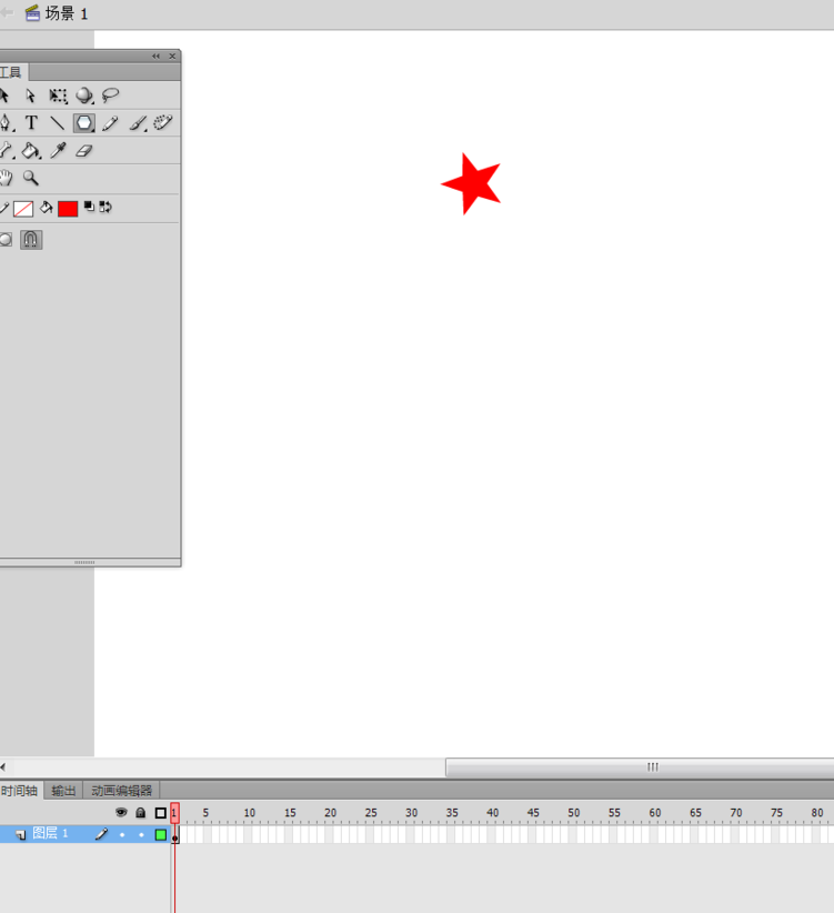 2、选择多角星形工具,笔触设为无,填充颜色为红色。