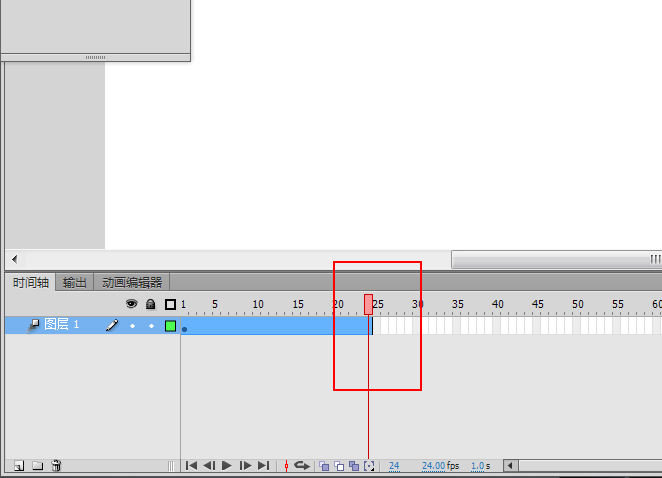 6、然后将鼠标放在第24帧上,鼠标就会变成左右箭头的形状时,按住左键向右延长帧数。
