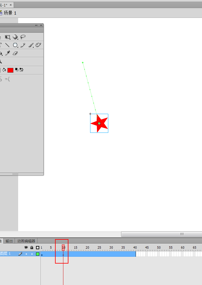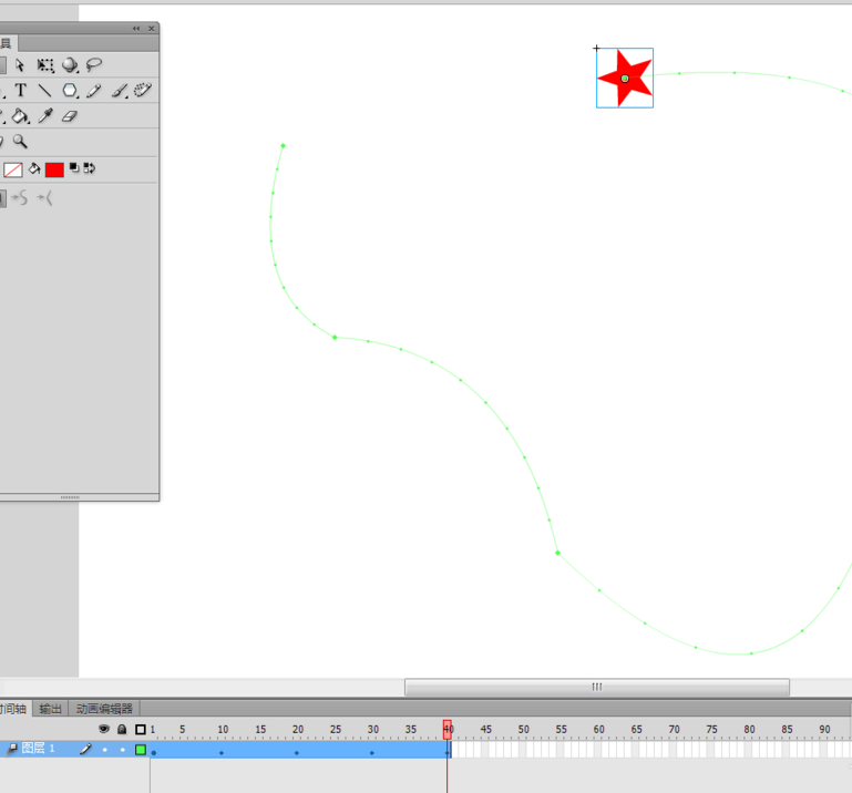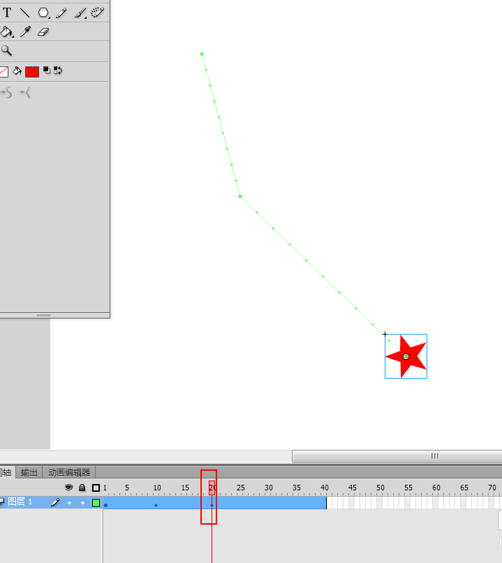 五角星沿着不规则路径运动,这个动画要用到补间动画。