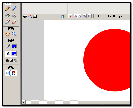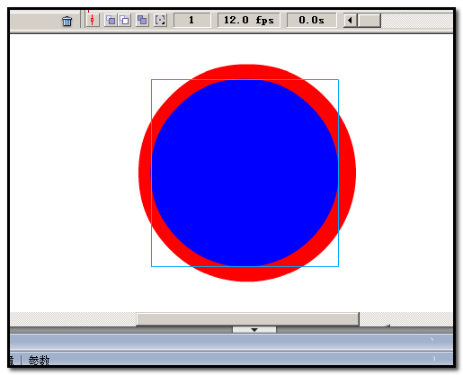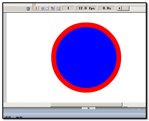 5、在工具栏这里点下椭圆工具,把笔触颜色和填充颜色设置为蓝色。然后,按住键盘的SHIFT键,在舞台上画出一个小于红色大圆的蓝色正圆。