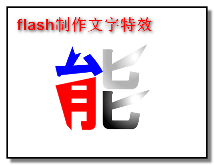 3、鼠标在其它位置点下,取消文字打散后的选择;然后,开始为文字填充上各种颜色。比如,第一种颜色为蓝色;选取颜料桶工具;并设置填充色为蓝色;在“能”字第一笔上点下,效果如本步骤的第二张图。