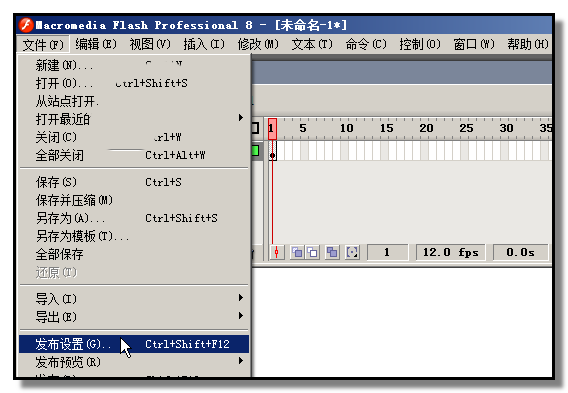 9、如果你想把文件保存为JPEG格式或PNG格式或GIF格式的,保存文件前要进行一些设置。顺序点击:文件-发布设置