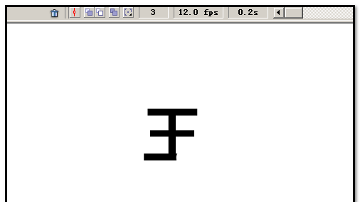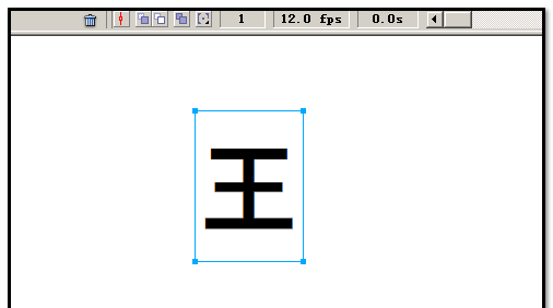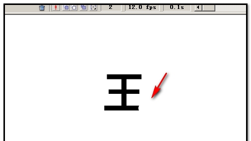 5、鼠标再在第三帧处点下,按下F6插入关键帧,“橡皮擦”工具把“王”字最后一笔的右端擦下,再擦掉一部份。