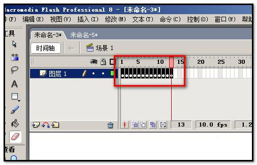 7、鼠标再在第五帧处点下,按下F6插入关键帧,“橡皮擦”工具把“王”字最后一笔剩下的部分全擦掉。