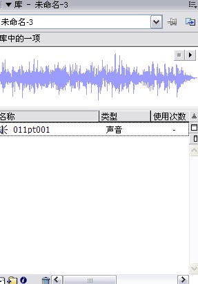 3、在库面板中我们可以看到刚才导入的音乐,上面有个播放键,可以播放听一下,是不是能够放出来,因为有音乐会出现问题。