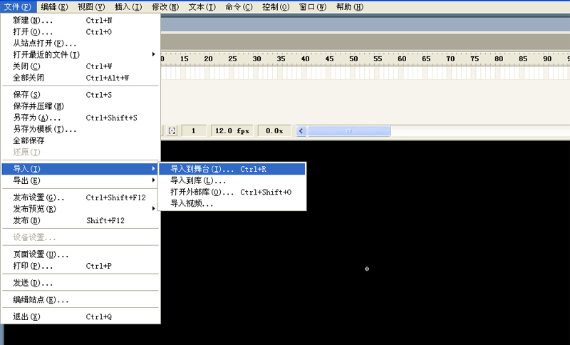 3、进入影片编辑区域,执行文件-导入-导入到舞台命令,导入一个事先准备好的毛笔素材。