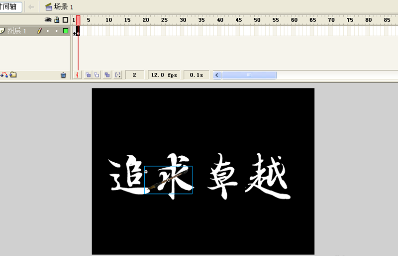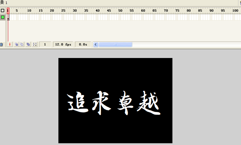 4、返回场景,选择工具箱里文本工具,在舞台上输入文字“追求卓越”,设置文字大小为180,字体为王羲之书法字体,字体颜色为白色,并设置全居中。