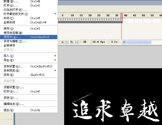 9、执行ctrl+enter组合键进行导出影片,这样就制作完成了,执行文件-另存为命令,将文件保存在一个合适的位置。